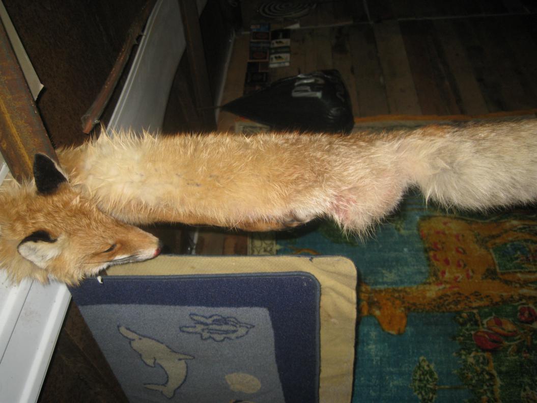 Вчерашняя лиса.Выстрел Сергея лишь пара царапин на задних лапах.Выстрел Романа ИЖ12 16к картечь 7, пробито лёгкое одной картечиной.Выстрелы мой и Корбана цели не достигли.