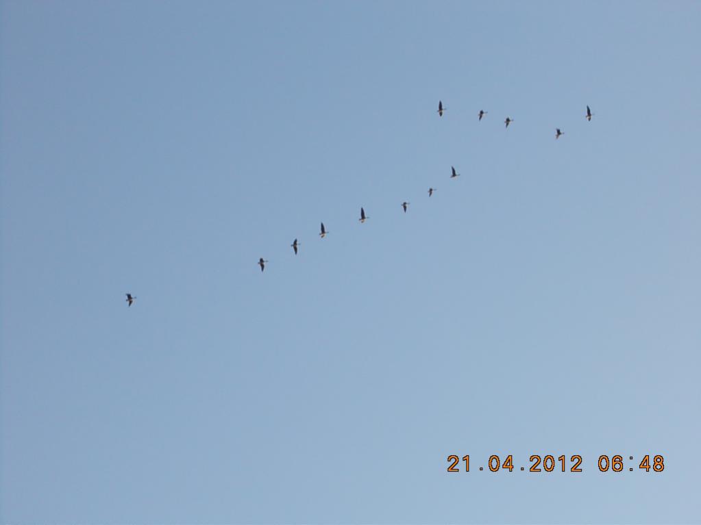 Расположились,так сказать и пошли на разведку.Гуся летело много.Правда небольшими косяками,но стабильно и очень высоко.Садились где то за озером.Нашли мы место,где он приземлялся на кормежку.Озеро разлилось и подтопило поле на котором было неубранное просо.Сверху бала вода,приблизительно см 5.А снижу жижи по колено.