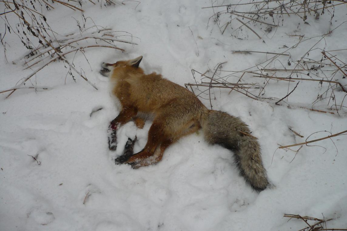 Сегодня тоже поохотились 2:0 в нашу, сабаки отработали на все 100%. Лисе не повезло уходила подранком, собакены догнали порвали так что и обдерать не стал. Фото конечно не очень.