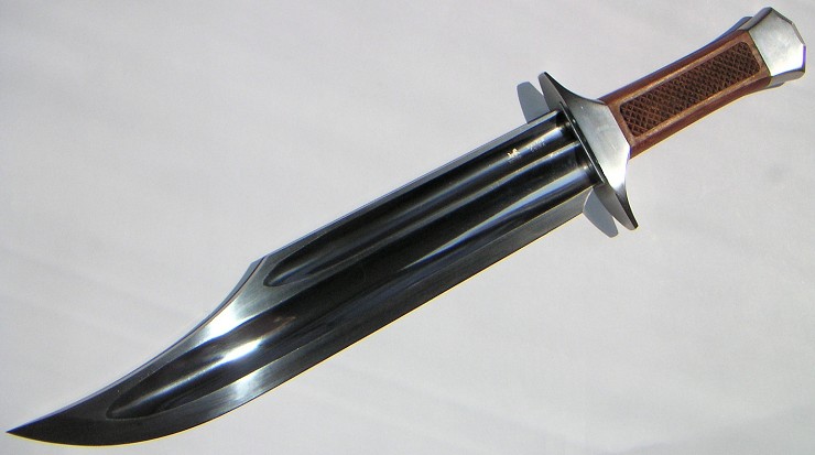 Если тыльной частью в ладошку упереть, то можно и кабанчика добрать, без повреждения руки! "кровостек", как его называют, увеличивает прочность клинка! Конусообразная форма ножа держиться как пробка в ножнах! Очень продуманно все. Наши армейские кортики делали, опираясь на эту модель ножа!