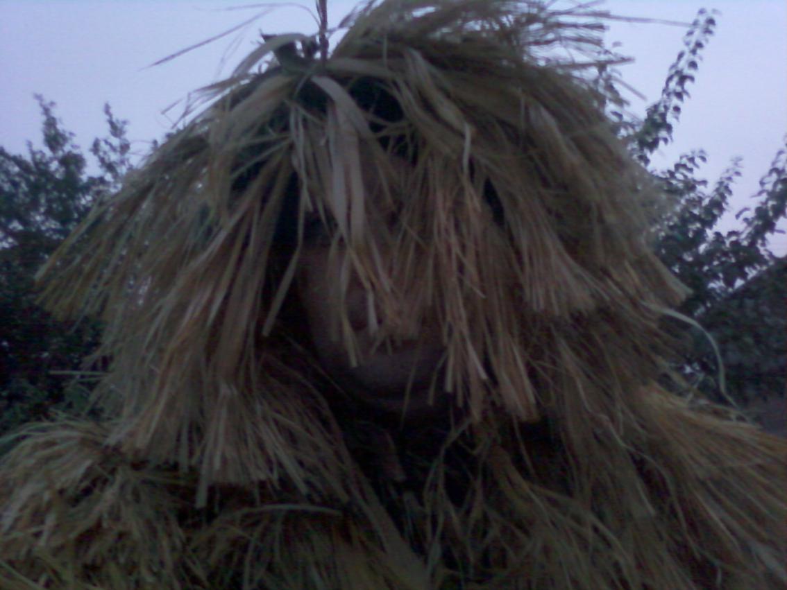 Вот так выглядили наши костюмы естественных условиях. Сильно не увешаны лыком поэтому даже в мокрых легко передвигаться. Опять же осенью когда камыш ещё зелёный, из одного лыка костюм будет выделяться.