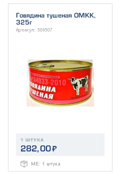 Я правильно понял, что маленькая банка Оршанской тушенки 1 сорт стоит 140 рублей (указано на страничке Вконтакте)? Я думал, что у вас более демократичные цены. В магазине белорусских товаров (пересечение проспекта Ленина и Первомайской) эта же банка 130 рублей.