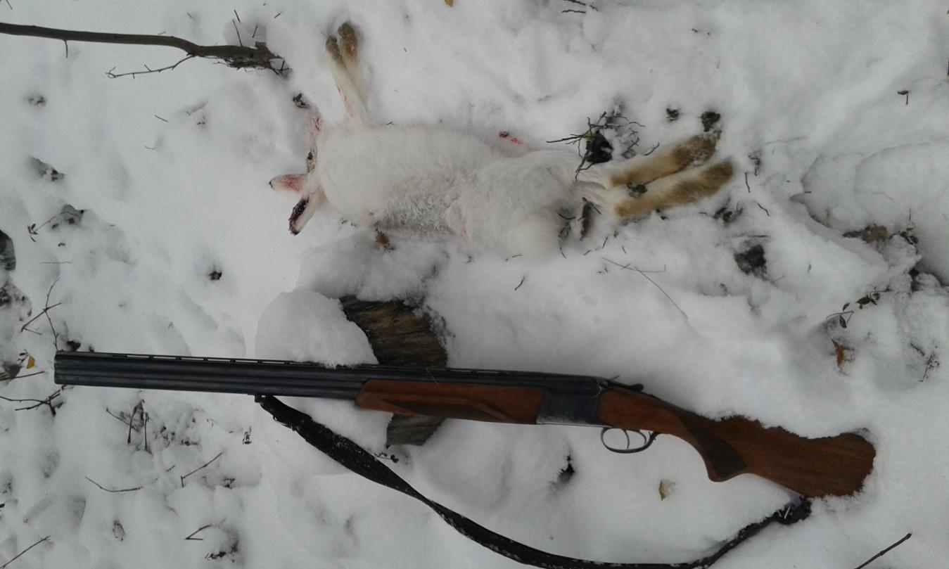 В субботу 3 часа пришлось походить в поисках косого. Нашел в средине старой обваловки нефтянников. Лежал в густой траве возле небольшого деревца. Стрелял на вскидку не по зайцу(не видел его, а только слышал), а по предполагаемому месту его движения. Результата: попал-не попал не видел, а зайца увидел, когда он перебегал через обваловку. Я выбежал на поле, по которому улепетывал , как оказалось, раненый заяц. Бежали на перегонки- я и заяц. через 250 метров заяц выдохся и растянулся на поле. Знай наших!