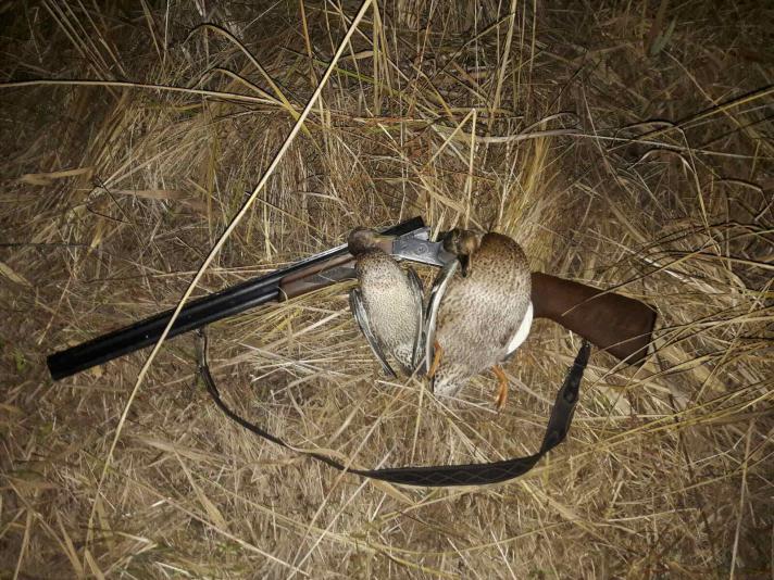 Пролёт водоплавающей идёт полным ходом... Вечер, 15 минут охоты на сухом, в "тапочках", без чучалок, манков... 4 кряквы и 1 чирок...6 патронов (больше с собой не было) . Лет ошеломляющий..