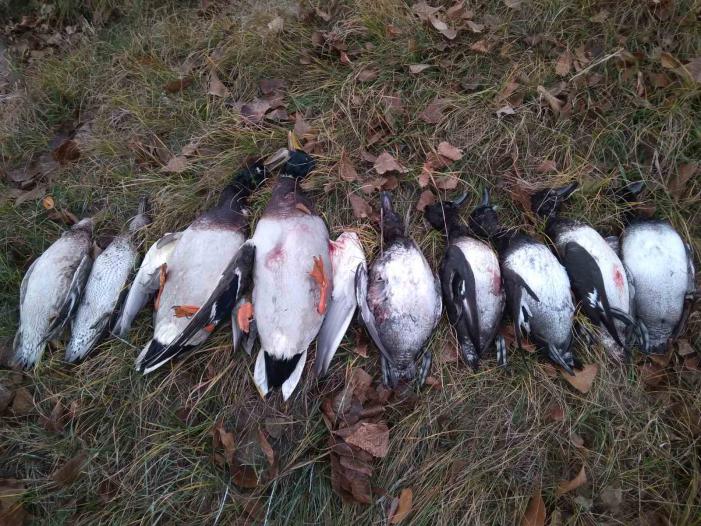 Опять не угадал штаб-квартиру зелёноголовых )) . Одна утка один выстрел. Чирки свалили , кряквы дают осадки в кустах и не летают . Спасибо серой утке , как это часто бывало -выручила .Налетела на чучела ,как по учебнику.