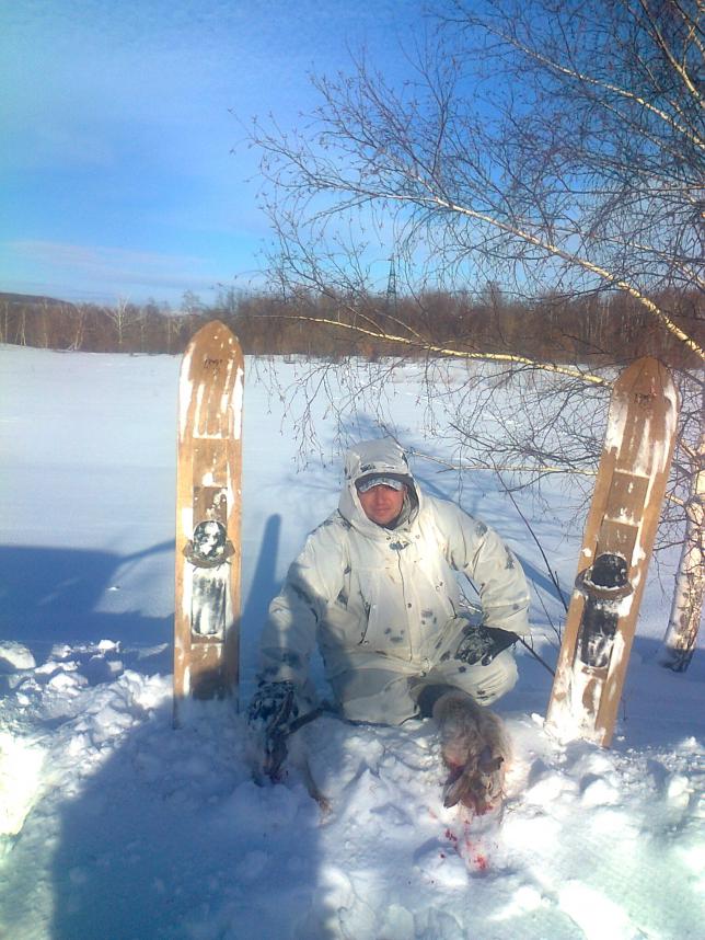 Сегодня с другом вдвоем нагулялись вволю. Погода супер,тишина. Видели трех.Первый и второй лежали от дороги в 7 и 10 метрах.Первый,хитрющий, ушел без выстрела,далековато было. Второго взяли.С дороги свернул в посадку и тут же без скидок лег,дурачок. Третий в развалинах, коровниках гулял.Ушел используя естественные складки местности.Стрелял два раза,смазал.Фото не будет,зайца взял друг.