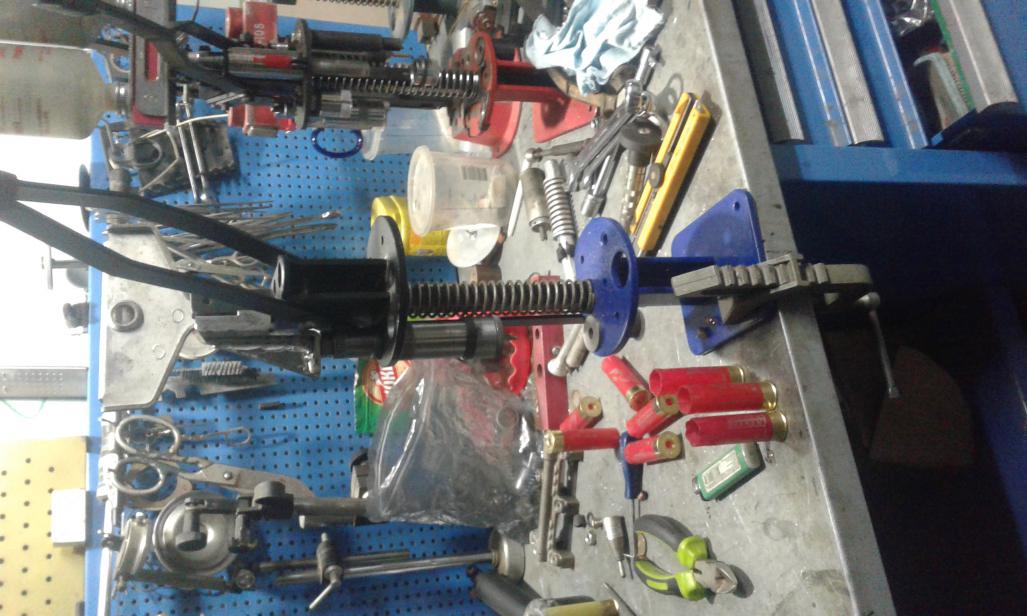 на конец то дошли руки запустить токарный станок,взялся за восстановление и переделку МЕК250,был он ржавый и старый, отмыл покрасил и для начала сделал пост декапсуляции и обжимки гильзы так как в родном исполнении там использовалось прогонная втулка как на LEE,теперь это делается за одно нажатие.на очереди пост запрессовки капсуля,фото с телефона забыл повернуть извеняюсь