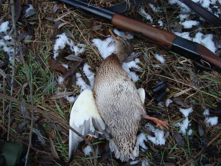 В субботу выехали в общем то на рыбалку с ребятами, но помимо "веселой" погоды, напрягало отсутствие поклевок, поймал одного щуренка и то отпустил подрастать. Часам к 15-решили выплывать, а ехать домой так рано-не особо хотелось. Ружье, забродники, патроны -все в машине, решаю несмотря на гололед, снегопад и прочее попытать охотничьего счастья.
