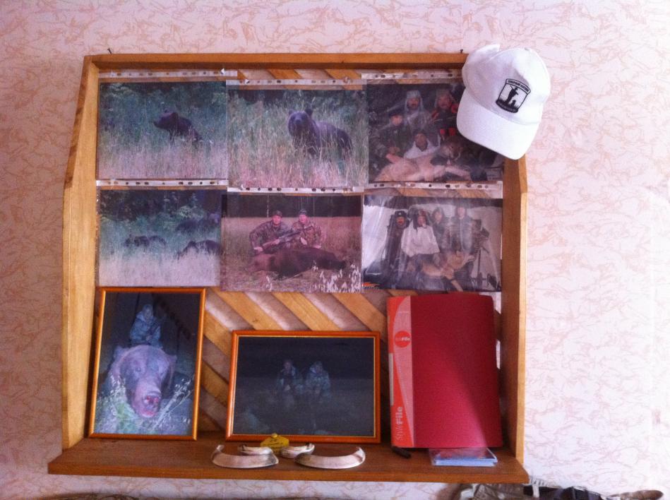 Приехав домой мы были расстроены увидев мишку – он был не такой за которым мы ехали. . Мы с Михаилом Николаевичем налили по маленькой и начали варчять как старые бабки )))) в ожидании стрелка промывая ему кости. В 2 ночи, когда Александр вернулся, рассказал как было дело. Они приехали на место и потихоньку пошли по полю к лабазу, не доходя до него метров 50, неожиданно из овсов, по ходу движения, поднялся медведь на задние лапы и тут уже не оставалось вариантов….пришлось стрелять….. Саша остался на поле желая реабилитироваться убив большого кабана , но все было не в его пользу. На поле вышли опять двое медвежат с мамкой которая постоянно рычала и не давала кабанам с другого берега Камы зайти на поле. Потом вышел туман , что очень усложнил наблюдение, только в ночи были слышны всплески в реке и хрюканье, как довольные кабаны переправлялись на поле через нее. В итоге не дождавшись звонка от Саши егеря сами приехали за ним и на этом охота закончилась…..