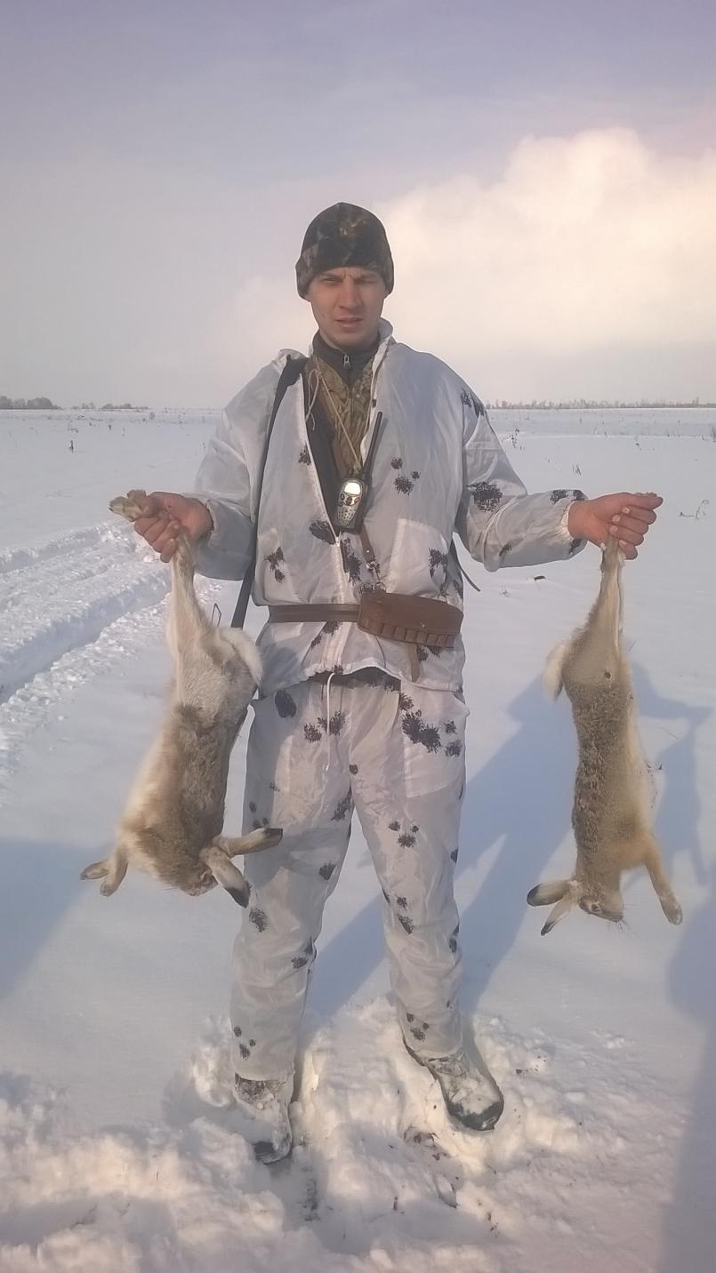 И мы вчера вырвались. Кроме лисьих следов сначала никакие не видели, и тут натыкаемся на зайчий след похоже поднялся от лисы. Прошел полтора поля и лег я пошел, по следу немного прое...л скидку тут товарищ свистит что скидка в траву я поправляюсь захожу в траву и зая не спеша ко мне навстречу взят одним выстрелом с пятнадцати метров. Второй след тоже вместе с лисьим был смешан думали в посадке ляжет, но нет лег в поле поднялся в пяти метрах от товарища и от трех стволов не смог удрать.