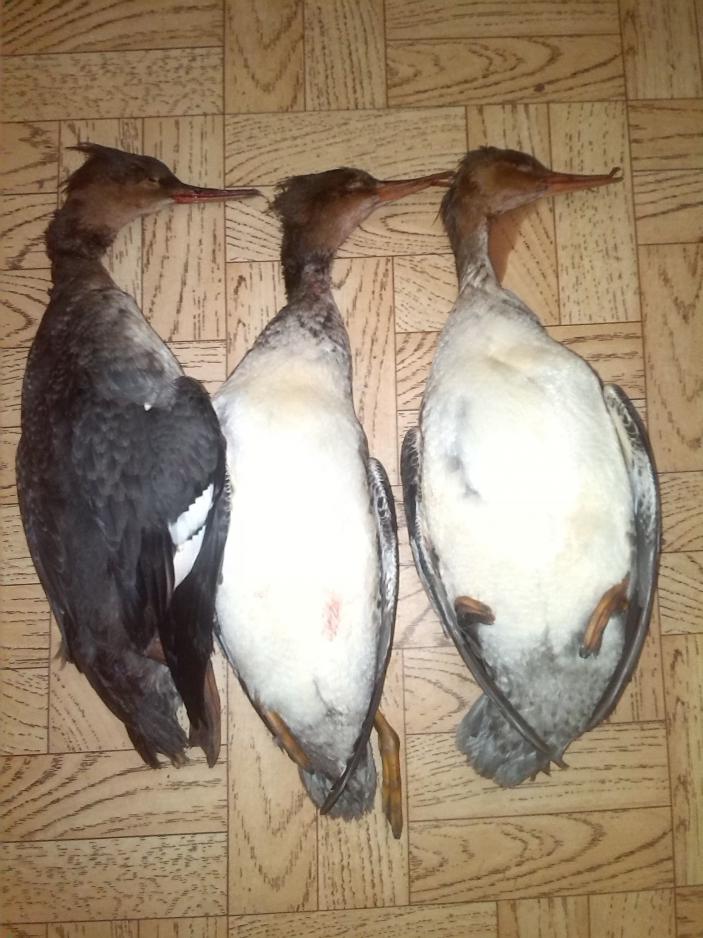 Всех с полем! Удалось добыть трех крохалей дуплетом и чирка свистунка,потерял крякового, не смог догнать, 7 раз пытался его дострелить на воде, но он таки уплыл. Коллеги подскажите крохалей щипать или обдирать как лысух?