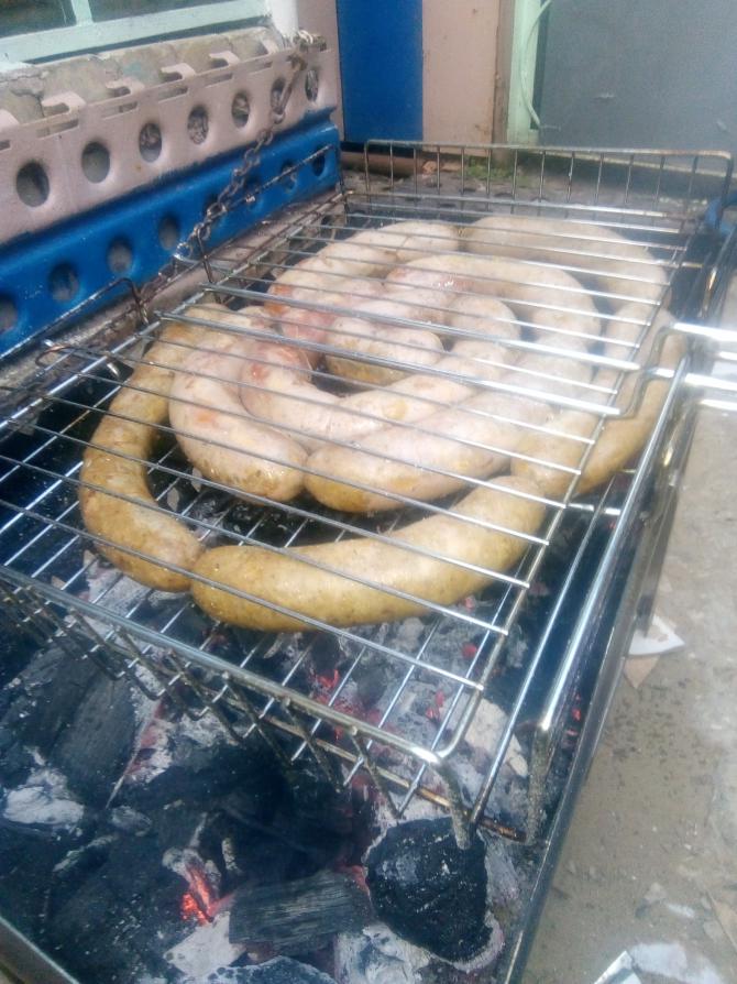Морозилку надо освобождать. Колбаски домашние. Фарш, мясо по вкусу, крутим на мясорубки, чем больше жира, тем сочнее, лук, чеснок, камень преткновения, я добавляю. Специи разные как видит око видит, соль. Чрева свиная, насадка на мясорубку, набиваем, неплотно, протыкаем иглой. Мангал, угли, жар, колбаски на решетку и в путь.