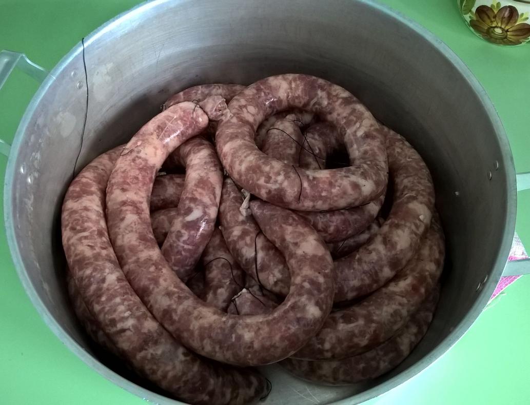 Здорово выглядит,а раз так значит и вкус на высоте.Мы тоже иногда такими вещами балуемся,когда кишки есть.Всё то же самое,но есть там кроме свинины и мясо перепелов,коростелей,вальдшнепов ну и что ещё из дичи есть в данный момент под руками.Дичины немного,но она там есть.Правда жарим колбасу не на мангале.