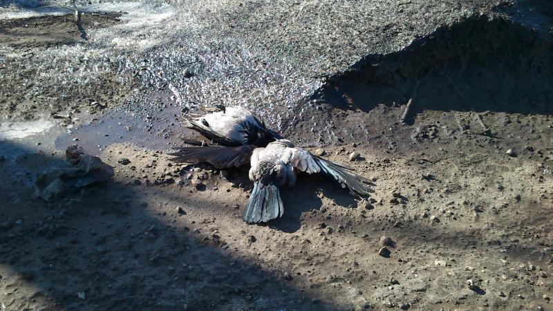 Участились случаи без причинной гибели ворон!Сегодня был в районе "Санчелеевской свалки".Обнаружен падеж серой вороны и других "вредных" птиц в количестве 14 голов.Сидели и болели на ветках,было выписано лекарство в дозировке "JSB/0.67"и "Люман|0.68".Хочу сказать сразу,что дозировка подобрана видать не правильно т.к начали массово дохнуть, передоз!Фото больных птиц прилагаю.
