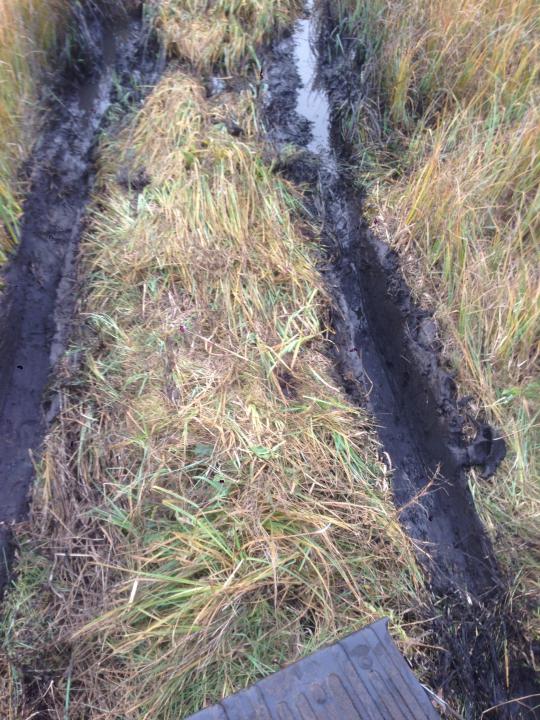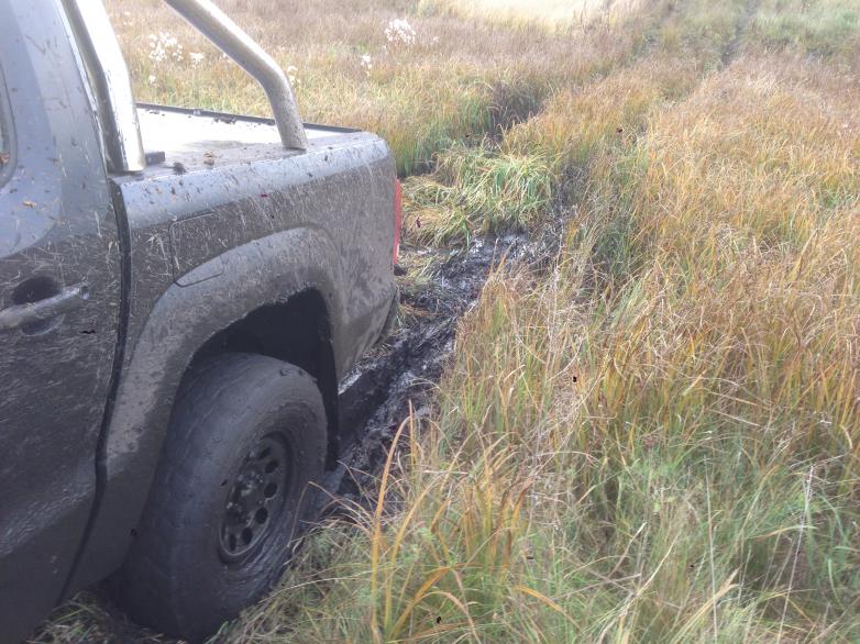 не обошлось без приключений, решил проехать по чужим следам и сел на брюхо в раскисшей низине)