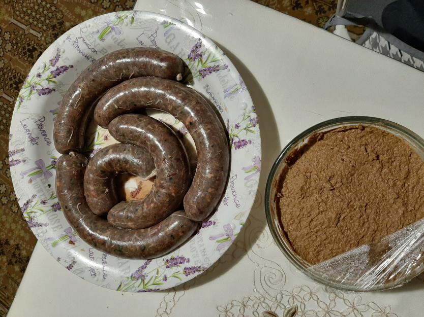 Ндаааа коллеги, фото с лягушками весьма экзотическое блюдо для наших широт. Ну их, в болото. Очередная порция паштета готова, скажу я вам потрошка поздноосенних уток это не что! Как и сами утки. Сделал немного калбасок, из утятины. Пока маринуются. Ну и традиционная для наших широт рыбка. До золотистй корочки.