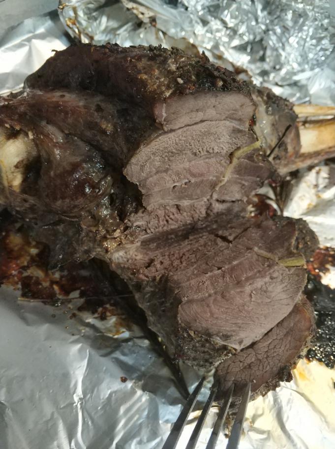 Окорок кабана! Маринад прост - нашпиговал чесноком, добавил мороженный розмарин и чабрец, перец всякий, соль и с верху масло оливковое, натер... пленкой пищевой закрыл и в холодное место на сутки... Запекал при 200 грудусах - 1 час с накрытой фольгой, 2-й час без. периодически поливал маслом по чайной ложке... Получилось очень вкусно, рекомендую!
