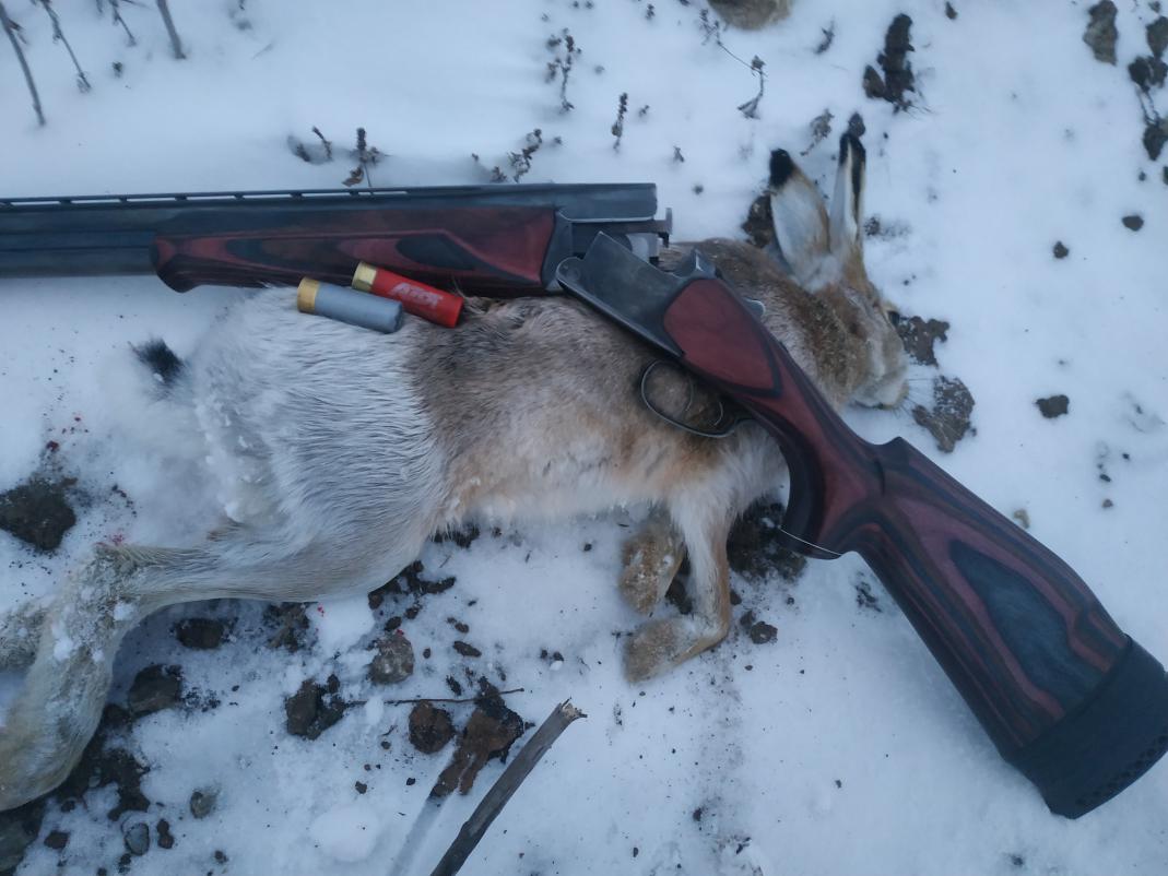 Интересно конечно почитать про невероятную борьбу зайца и охотника, накал страстей, про пройденные пердячим паром десятки километров под эйфорией скорой развязки))) , но...у меня все как-то проще что-ли... все ходы, места жировок, места где ложатся, все это изучено давным давно. Поэтому и охоты мои , короткие как выстрел.. Вот и вчера только вышел на свидание с ушастым, не проохотился и десяти минут вместе с дорогой, бах... есть. Но зато какой невероятной красоты единственный выстрел!, по здоровому русаку, изменившему в один скачок траекторию движения. Итак. Заяц третий, патрон феттер единичка третий, настроение очень гуд.
