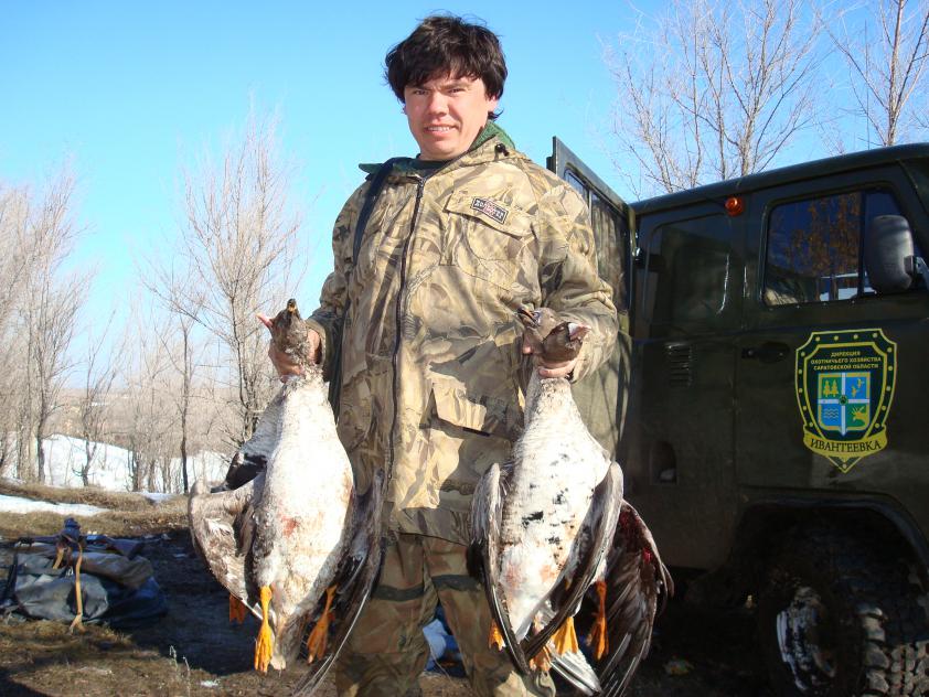 Вчера приехалпоздно небыло сил писать-отсыпался.Провёл на разведке-охоте пятницу----вторник.Разведовал новые места,хотя для меня все новые.Поездил по полям посмотрел где гусь летает.В пятницу гусь был но высоко.В субботу навалом и со всех сторон.Это потом я понял,что от сорвался от непогоды.К воскресению определился с местом-взял пару казары(это у нас на севере белолобого завут).С субботы на воскресение пошол дождь,надо было сразу бежать домой-не учел самарскую грязь(как пластелин).Поэтому пришлось охотиться под дождём два дня.Дождь шел ровно двое суток.И третий чтобы просохла дорога.За два дня дождя видел три табуна.За третий пять,но все не там где хотелось бы.Был с биноклем и ружьём.Но доволен.На следующий год буду готовиться-гусь есть и можно стрелять