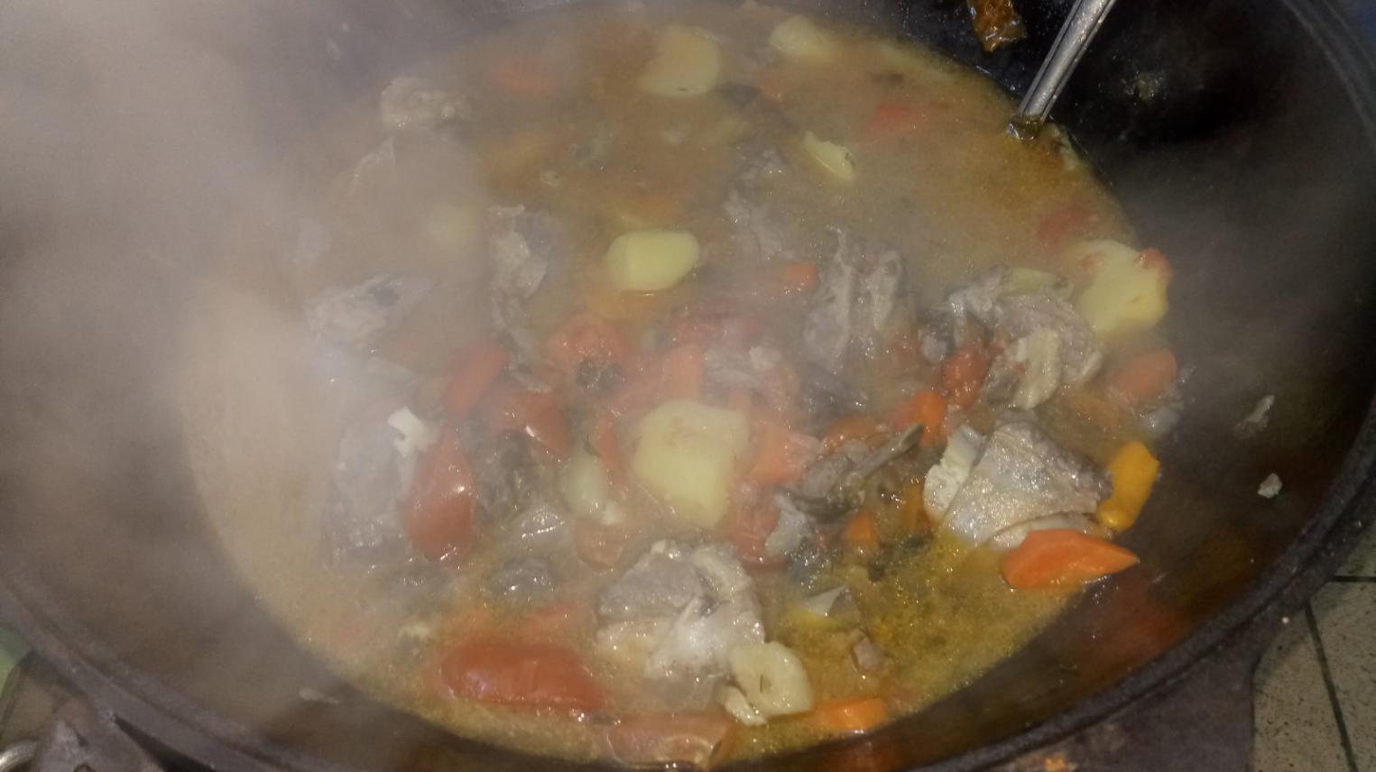 Рецептов подобного блюда на самом деле очень много, так сказать на все национальности и на любой вкус и цвет. В основном идут без добавления пива или вина, а просто в собственном соку от овощей, но для этого на дно казана нужно положить курдючный жир или сало, чтобы не пригорело мясо и лук, которые лежат на дне казана. Я записал самый наипростейший, так сказать без лишних заморочек. Накидал всего, поставил на огонь и просто жди. Если есть время и настроение, то готовлю немножко по другому.