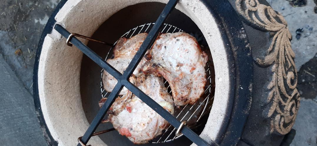 В догонку кину пару фото. Тот же тандыр. Свинина на кости, маринованная и немного картофеля. |