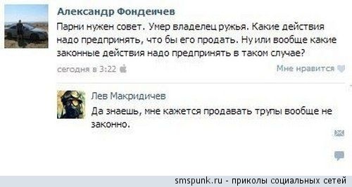 Останавливает как-то гаишник фуру, сам метр с кепкой. Выходит из фуры амбал. - Мне кажется, вы превысили скорость! - Так тебе кажется или я превысил? - Мне кажется, вы пьяны! - Так тебе кажется или я пьян? - Нагнитесь, я понюхаю! Докуда вырос, там и нюхай!