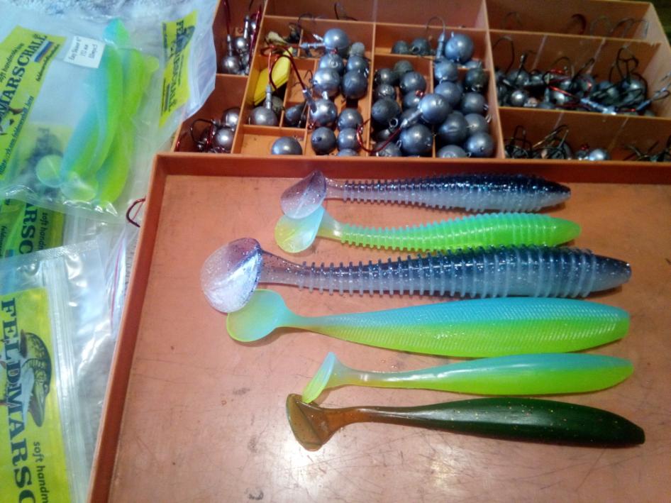 В основном работали две приманки:вот эта абракадабра и черный с блестками твистер