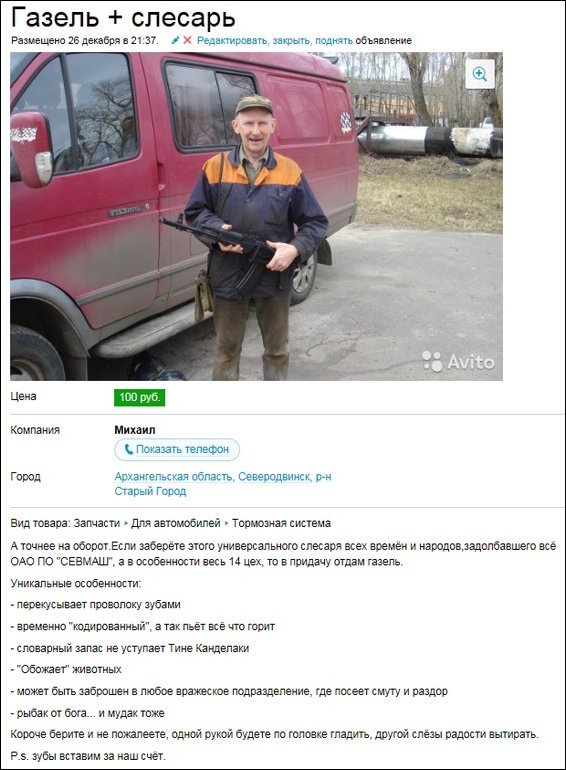 - Сынок, принеси-ка бабушке крем для губ. - Который крем? - Такой в тюбике, на нем «Момент» написано. Стоят на дороге ГАИшники, скучают. Видят - дед на телеге едет. Решили прикольнуться. Останавливают: - Дедушка, Ваши права! Дед подымает палкой кобыле хвост и говорит: - В бардачке возьмите!