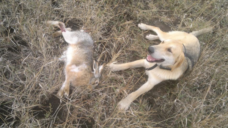 Погодка для охоты не очень удачная,но кто ищет ,тому удача может и улыбнуться.Интересно ,что заяц переместился из "серебрянной " в жёлтую траву.Но пока не наткнёшься ,не встанет.Нам повезло,наткнулись.С подъёма была перебита задняя лапа.Дальше дело было за собакеном .Поймал и охранял зайца до прибытия.