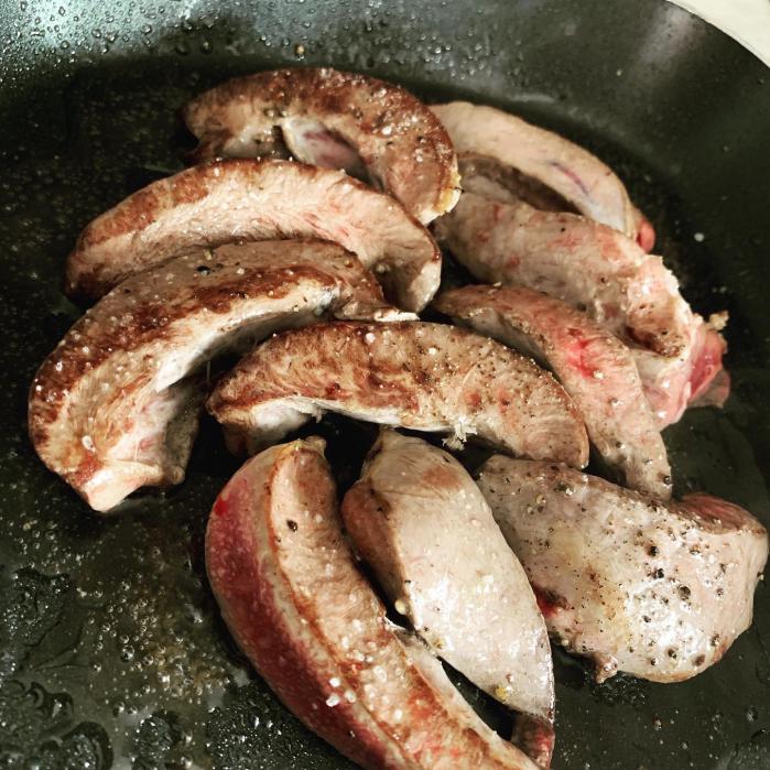 Самый распространенный рецепт после добычи зверя на охоте, это печень. Я делаю очень быстро и просто. Быстренько порезал печенку и промыл несколько раз в проточной воде. Пока отмокает – режу лук и начинаю его обжаривать, как только золотистым лук стал, выкладываю печень и 5-7 минут обжариваю. 10 минут и сковорода пуста… Сфоткать не успел. Как же вкусно закусить такой закуской запотевшую рюмочку водки.