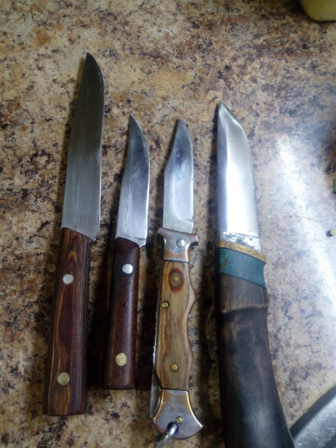 наверно фото не отражает в полной мере сказанного выше. у всех профиль в сечении как было показано выше, соответвует пункту №3 из картинки. ну и собственно, поверьте на слово все экземпляры, за исключением верхнего, сделаны 20 с лишним лет назад. и служат до сих пор верой и правдой. вторым сверху, который раскладной, ошкурено достаточное количество разной живности, не смотря на то, что изначально это был китайский ножичек из хз, непонятно чего)) заменена ось и лезвие.. а, ну еще сточены упоры... это конечно не полная коллекция, еще один в деревне, еще один сломался. у всех сталь 95Х18, это было изначально принципиальным критерием