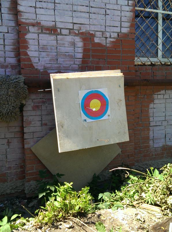 Тоже немного пострелял)) но из лука и рогатки,ананасы разбежались,хотя до этого были замечены на 63 и 75 метров,но и ладно шашлык удался),рогаткой стрелой щит пробит на 1\4 щита ,лук блочный на фото,рогатка аля бвтерфляй по доске картечь 8.5 с 5-6 метров) фото!