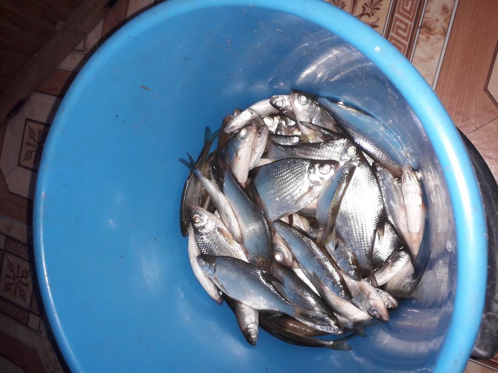 Посидели на уклейку. Совсем не густо. На троих пол ведра вперемешку с густеркой.