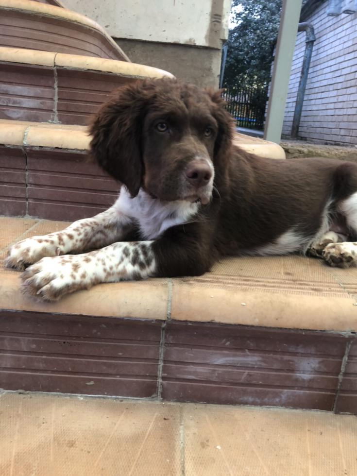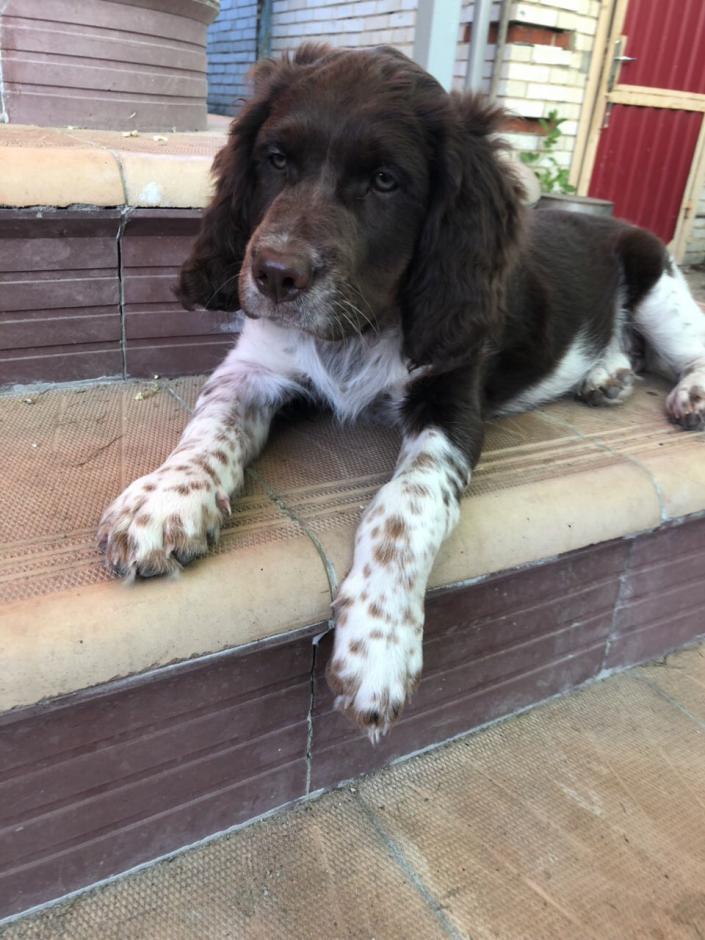 Рейси все еще ждет своего хозяина. А пока осваивает служебные команды. Знает "ко мне", "сидеть", "лежать", "ищи". В процессе обучения команда "подай".