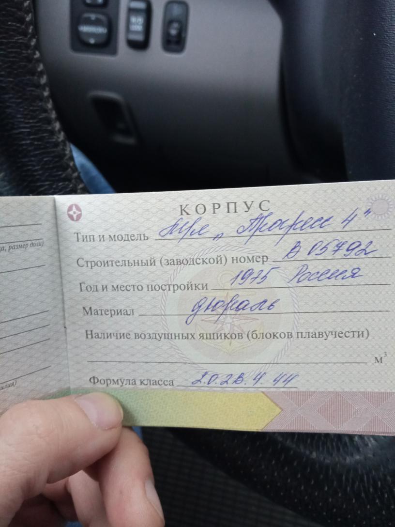 Фото судового билета, формула класса изменена, максимальный двиг 44 кВт = 60 л.с.