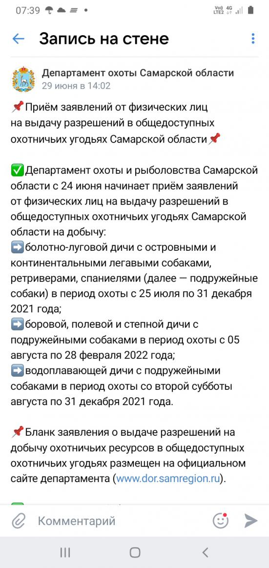 Департамент охоты и рыболовства Самарской области с 9.00 часов 15 июля 2021 года начинает приём заявлений от физических лиц на выдачу разрешений на добычу охотничьих ресурсов: