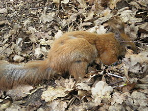 В отличие от зайцев или оленей, белки не способны усваивать клетчатку, и поэтому питаются растительностью, богатой белками, углеводами и жирами. Самым тяжёлым временем для белок является ранняя весна, когда зарытые семена начинают прорастать и более не могут служить в качестве пищи, а новые ещё не поспели. В этот период белки питаются почками деревьев, в частности серебристого клёна (Acer saccharinum). Несмотря на широко распространённое мнение, белки всеядны: кроме орехов, семян, плодов, грибов и зелёной растительности они также употребляют в пищу насекомых, яйца и даже небольших птиц, млекопитающих и лягушек.