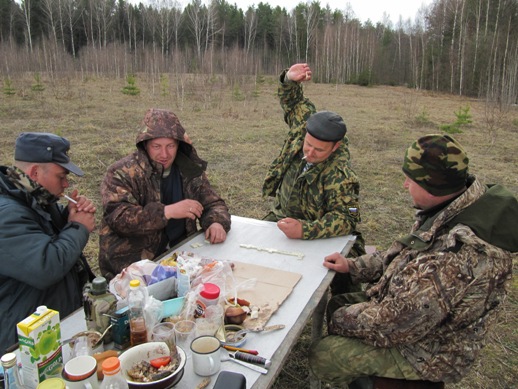 Приближался весенний сезон, а так как открытие попадало на вторник, и продолжительность охоты составляла всего лишь 10 дней, то мне пришлось заранее подготовить свое руководство и потихоньку клянчить отгулы. Благо мой начальник понятливый и сговорчивый, да и план я выполнил в срок, то вся эта затея увенчалась трехдневными отгулами в счет очередного отпуска. Пять дней со среды до воскресения полностью в моем распоряжении. Все необходимое заранее было приготовлено и переправлено в деревню, я отправился в путь налегке. Автомобиль у нас с супругой на двоих, поэтому мне ничего не оставалось, кроме как добираться своим ходом. Деревня моя относительно недалеко, от ст.Линда еще пару десятков километров в сторону славного старинного города Городец. В тех местах и будут происходить события моих очерков. Предстоящие пять дней свободы и долгожданного сезона поднимали уровень счастья в моем организме до максимально возможного. Так что ноги несли меня, и я как первоклашка с пятеркой в тетрадке, вприпрыжку продвигался в сторону вокзала. Да-а, давно я не ездил общественным транспортом! Зайдя в электричку, обнаружил, что вместо деревянных “задомассажеров”, вагон оборудован мягкими креслами и в дополнение к этому интерьеру прилагался удобный столик между сидушками. Такой, знаете ли, рай для любителей доехать до Уреня или Ветлуги и заодно с комфортом раздавить пузырек, другой. Всю дорогу я пялился в окно и глазами обследовал знакомые места – болота и разливы, на которых уже не первый год стояли шалаши. К моему удивлению многие из них не были восстановлены, может в связи с вышеописанными сроками открытия, но шалашики добротные. И вот я уже близко к цели, иду по дороге к нашему деревенскому дому. С зимы здесь ничего не изменилось, только цвета, вокруг другие цвета, весенние, еще только пробуждающиеся краски. И вот последний рубеж – разбитые колеи, промоины на проселочной дороге, комки глины, лужи и грязь, а я в черевичках, мягко говоря, немного не подходящих для этой местности, городской пижон блин. Ну да ладно, ноги то несут, несут на встречу ощущениям, которые я испытывал год назад и потом вспоминал всю зиму, и вот они уже совсем близко. На подходе к деревне слышен лай собак, беспорядочный, разномастный. Из всего этого гама, я узнаю родной мне, радостный, звонкий, с подвизгиванием, голос моего питомца – молодого кобеля западно-сибирской лайки по кличке Тибо. Он уже давно приметил меня, издалека причуял и ждал на крыше дровяника - его излюбленном месте. Зимой и летом, в жару и холод он всегда встречает всех с этого места, там высоко и хороший обзор, а развалившись на теплой крыше можно хоть целый день наслаждаться весенними лучиками солнца. Чем же еще заняться собаке от безделья. - Привет, привет, рыжий! Как же я по тебе соскучился! Мы же не виделись с тобой почти месяц! – говорю я ему. А в ответ звонкий лай, какие-то воздушные пируэты, прыжки и прочая акробатика. Я его глажу, он ласкается, а потом начинает немного прикусывать мою руку, как бы говоря: “Где ты так долго был? Я тебя жду каждый день, а тебя нет и нет. Пошли скорее гулять, в лес, в лес!” - Ну ладно, ладно, Тибо, потерпи немного и пойдем, скоро пойдем! - говорю я в ответ. Вот и бабуля вышла меня встречать. - Привет! Поцеловались, обнялись. На ее лице, морщинистом и уже загорелом, добрая улыбка, такая родная и доро