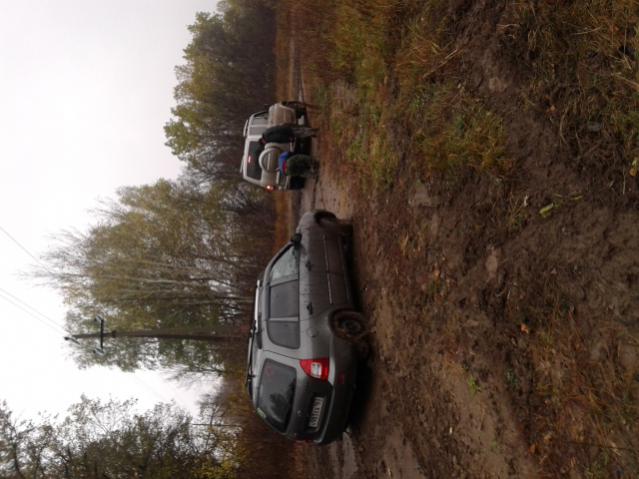 поехали на ПО. в залив усы.туда проехали отлично. а там внезапно дождик нагрянул.дороги полевые глина чернозем, машина а месте шлифует. дороги все распахали фермеры уе.ки.неужели нельзя оставить по пол метра с травой?даже в плотную к леску дорогу перепахали.чтоб у них там не росло ни чего на этих кусочках. в общем как бы мы не пытались выехать, как бы не толкали.чуть горка и все машина встает.пока травка ползет. один участок был без вариантов. с лева пашня с хорошей канавкой с права лес и как назло земляной вал. решили попробовать по другому.но не думали что там такая затяжная горка.машина шла хорошо в принципе зад придерживали.но потом участок с большим наклоном сделал свое дело.машину снесло. время первый час ночи. просидели там до начало девятого часа. дождь, дождь со снегом, +4 ветрище. мокрая одежда.