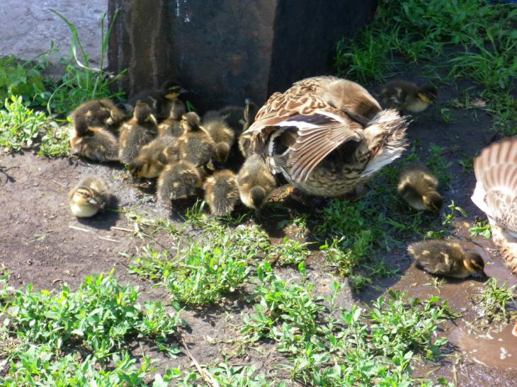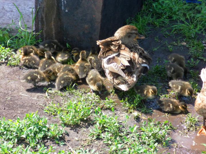у меня тоже бегают 9 штук, а вчера ездил за рязкой им на озеро, видел дикий выводок крыжаков утята крупнее подсадных, воля есть воля