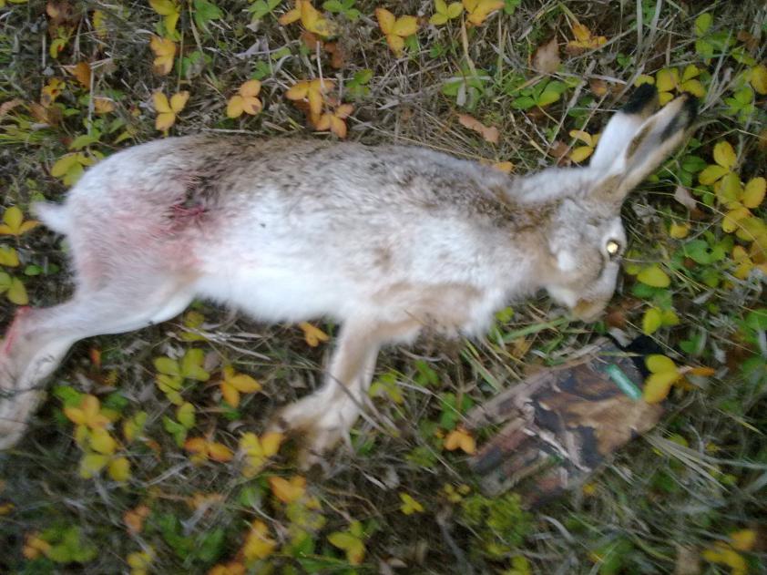 ). Заяц был подранен и добран (догнан) собакой на озимых. Потом застряли и 4 часа веселухи . |