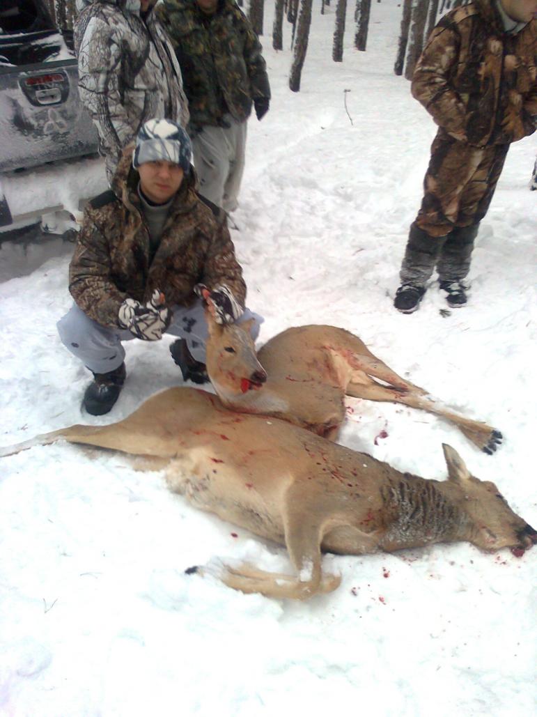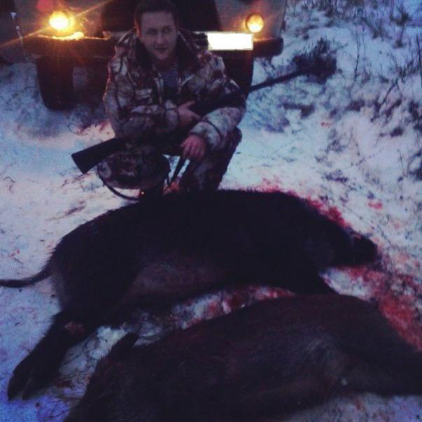 Товарищи позвали на охоту в соседнюю область. Охотили загоном, раскидали нас по номерам. Собачки заработали, потом и загонщики зашумели. Взял своих первых кабанов. Вышли с промежутком в несколько минут на меня из загона. Дорос по ходу до серьезного зверя.