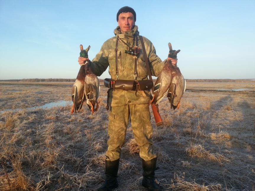 Всех с открытием, а добычливых еще и С полем. Весна в этом году непонятная, приходилось планы менять на ходу. Путевку в Кондор взял за 3 дня до открытия охоты и поехал на разведку. На гуся несколько раз весной пробовал в Кондоре, но понял, что это не мое, поэтому основной упор был на утку. разведка показала, что пруды еще не отошли ото льда, да и пробраться к ним проблематично (может к закрытию отойдут???). На полях большое количество воды, но куда вставать? Нужно же еще укрытие какое-то, а в чистом поле в грязи валяться желания большого не было. Последняя разведка вечером в пятницу перед открытием показала - много народу будет на бетонке - чуть ли не палаточный городок. Ладно, решил рискнуть и выплыть... именно выплыть в поле на лодке. Место казалось перспективным, в бинокль было видно утку, рядом сидела пара лебедей и даже близость дороги их не пугала. Большую надежду вселяло наличие кустарника, отделяющего разлив от дороги и дающего возможность замаскироваться. Прибыл на место в 9 вечера, оценил обстановку и завалился спать в автомобиле. Тяжело, адреналин не дает уснуть, мысли разные, время тянется оооочень долго. В час ночи все же меня вырубило, но в 2.30 проснулся и еще полчаса ворочался и периодически выходил из машины подышать воздухом... Если бы курил (бросил это неблагодарное дело 3 года назад), то точно пару пачек бы на нервозе сжег. Вот 3 утра, достал одноместную лодку, бросил в нее 6 чучел, масксеть, ружье, патронташ повесил на пояс, перетащил лодку через асфальт, спустился к воде и что я вижу? Небольшой морозец ночью сделал свое дело - кромка воды была во льду... Разбивая лед веслами пробирался медленно, но верно к своей цели. Расстояние в 400 метров, из которых треть как ледокол, треть практически по полю дном скреб (глубина была около 10 см), и вот оставшийся путь только нормально смог проплыть. Прибыл на место, раскидал чучела, спрятался в зарослях кустарника, расчехлил ружье и начал манить... Понемногу темнота начала рассеиваться и с отдельно стоящему чучелу на зов моего манка подсел жаждущий любви селезень. Одиночный выстрел как раскат грома прозвучал в утренней тишине. Ну вот и все. Рассвело окончательно, утка моталась стаями, одиночных подсадок больше не было. Со стороны Лопатино раздавалась канонада... Либо гуся палили, а может просто стреляли по всему, что летает.... В 6 часов обратно в лодку и на берег, а точнее - обочину. Довольный, уставший, в 7 часов уже был дома и щипал селезня, который оказался ну ооочень жирным. На вечерку решил не ходить, но на утрянку снова прибыл на старое место. Ночь была теплее, льда уже не было, в 3.30 я уже сидел замаскированный в кустарнике, пытаясь своим манком изобразить страстную и очень доступную утку.... Уже отпел мулла в Выселках, но селезни ко мне не очень летели. Вокруг стоял шум из свиста свиязи и звука крыльев носящихся на сверхзвуке чирков... И вот один свистунок решит таки подсесть к моим чучелам и проверить, может там и ему что перепадет... Перепала только дробь, и все. Жесткий был для него облом. От звука выстрела поднялось много сидящих уток, а метрах в двухстах даже оказывается сидели отдыхали гуси. Такой гогот... Немного все успокоились и ко мне на чучела зашла пара кряковых... Боюсь дышать. лишь бы не спугнуть.. и вот они сели и начали резвиться. Определив селезня и дождавшись, когда он немного отплыл от самки, неза