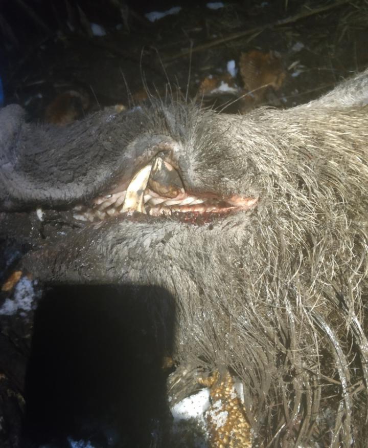 Очень трудовая охота получилась на днях, был в отпуске. Кабана мы обнаружили неделю назад, а значит предстояло его вычислить сегодня и добыть. SB 11,7 .308 прилетела в шею, задев первую лопатку, видимо стебель от подсолнуха все же помешал прилететь пуле нормально... 5 метров прошел и лег, секачек под 100 кг. А до дороги по прямой 500 метров, грязь, подсолнух этот долбанный... Но ничего, вылезли... не из таких мест выходили...