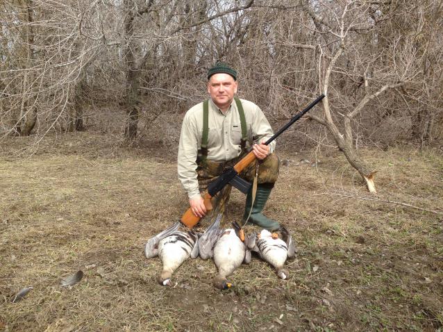 Мое виденье охоты на гуся,если коротенько: разведка(поиск гуся,поиск кормовых полей,вычисление основных маршрутов и время перелетов), маскировка на кормовом поле(окоп или скрадок), охота с чучелами и с использованием духовых манков. Понимаете,вот когда ты чувствуешь, что все ты обманул гуся.Когда видешь,что он заходит на посадку или уже присел к чучелам,вот тогда и начинаешь стрелять.Бьешь его наверняка.