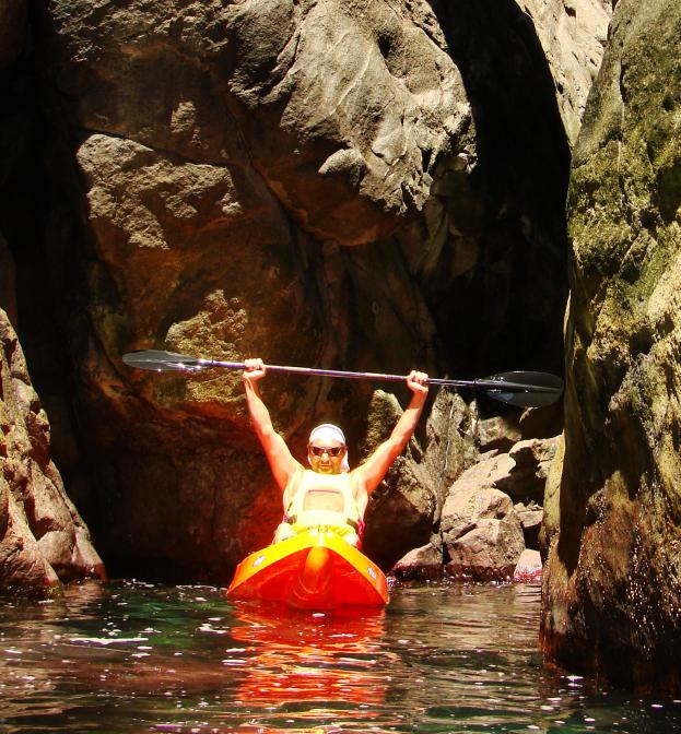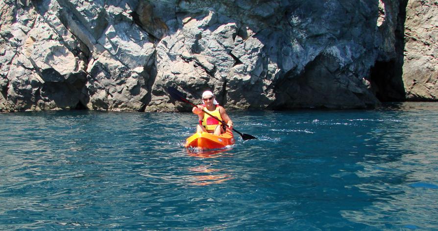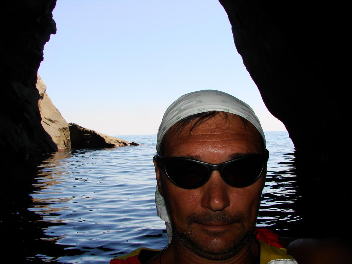 В Крыму освоил каяк. За пару часов прогулялся по морю около 6км вдоль морды Аю-Дага.
