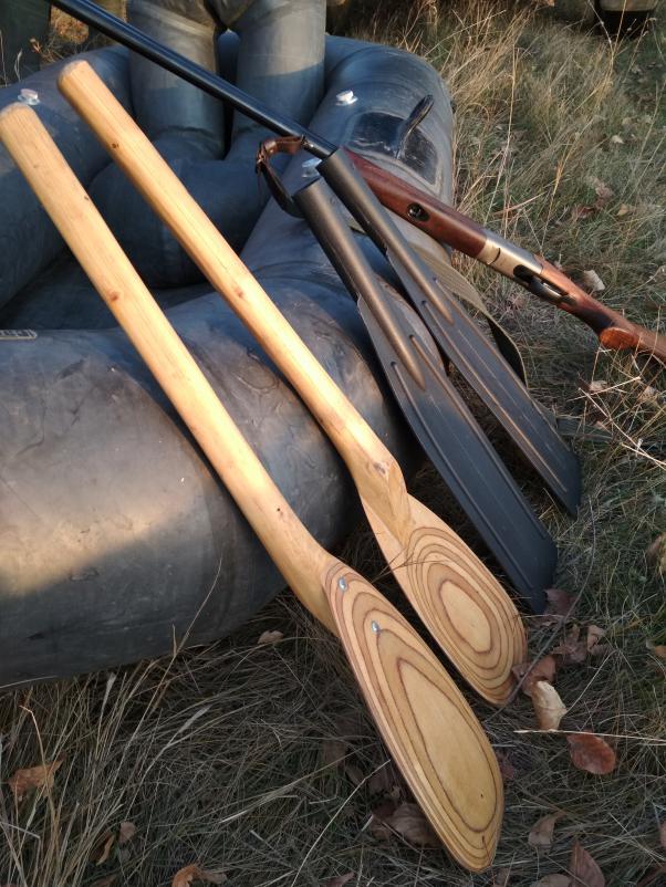 А вот еще гребки для одноместки. Друг мастер по дереву. Легкие, как карбон. Удобные. Самоцентруются в воде за счёт смещенного вперед гребка. Рукоять яйцеобразного сечения. Длина весла позволяет проталкиваться на мелководье, как лыжными палками.