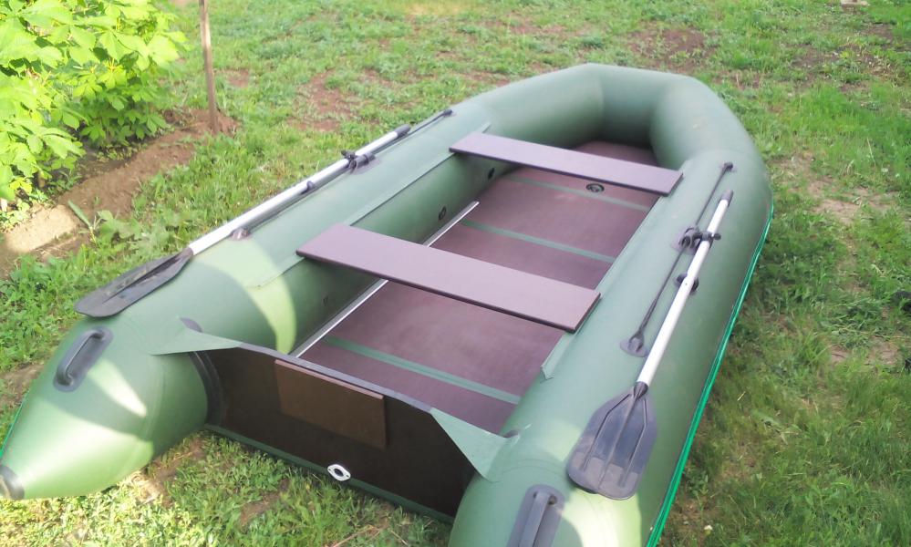 360 см))) Киль надувной на половину дна. Сзади снизу в районе транца на баллоны приклеено два плавника. Банки пока оставлю. Боюсь с борта свалиться Да и семейство по бортам не рассадишь. Им скамейки подавай В целом аппарат мне внешне понравился. Жду следующих выходных: приедет мотор, буду бить о борт бутылку шампанского и спускать на воду!