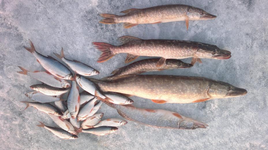 15.12.2012 открыл ледовый сезон на озере с символическим названием Безводное,долбил мелкий окунь.Часов до 10 безуспешно пытался оторваться от этой прожорливой бестии,10:30 ура!! оторвался!!Началась размеренная ловля сароги посолочного размера.Рыба явно придавленна давлением,поклёвки еле видны.Морозец давит и рыбу и рыбаков,раскинул палатку и жизнь расцвела,тепло,светло да и рыбёха вроде активизировалсь. Ловил только на бусинку,мотыля даже вытаскивать опасался,по-причине окуня.Это результат. 19.12.2012 место действия то же,мороз 23-25.Поставил 6 жерлиц,всё проклял,руки прихватывает за 5-6 минут.В палатке отогрелся,здорово помогает сухое топливо.Шла сарожька,довольно неплохо шла,размер чуть больше ладони но попадались очень неплохие экземпляры.Всё взял только на бусинку.Радовало отсутствие окуня и мелкой сароги.Жерлицы упорно молчали весь день,щука вышла нулевая.Вот такие две рыбалки.