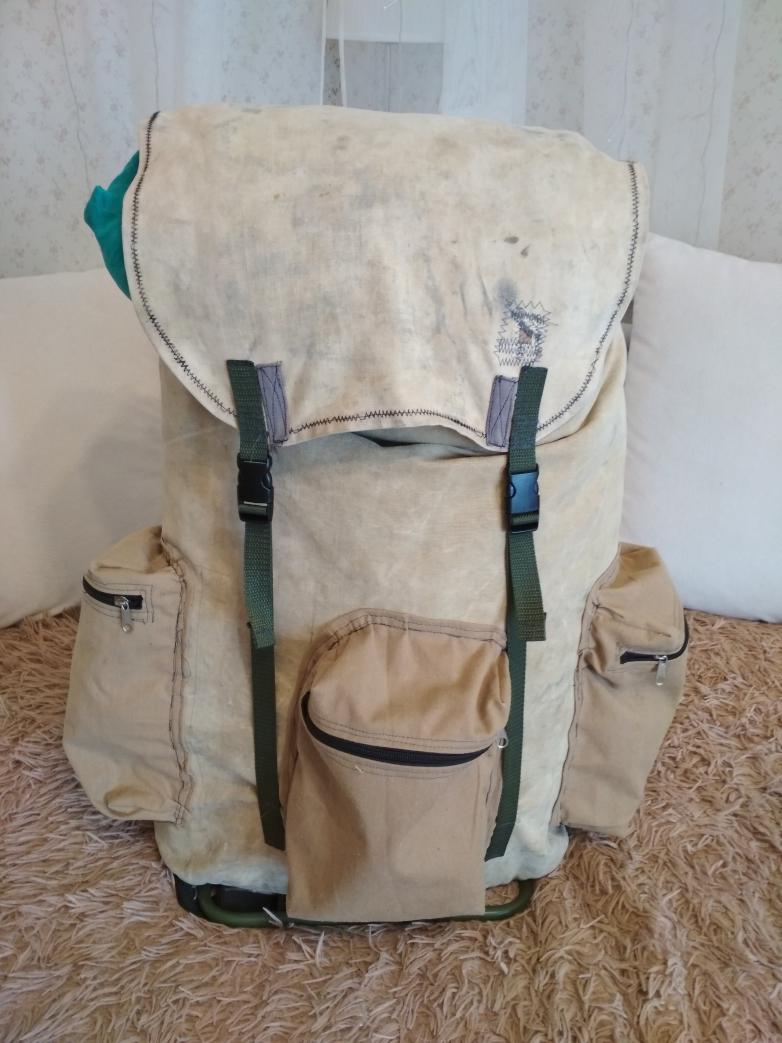 Продолжу рубрику "бесполезные самоделки" )). Буде кто мне такую шмотку на заказ сделал, по рукам бы ему надавал. А тут сам, из бросовых материалов, где что подобрал. Исходник - титановая рамка/поняжка. Это стоило денег. А так, брезентовый вещмешок был сшит лет так 20 назад, если не больше, для багажа в вахтовом самолете. Брезент от чего-то с буровой. Пришил три кармашка из тонкого брезента снаружи и один внутри. Адаптировал мешок под рамку. Если потребуется, мешок можно использовать, как сидор, а рамку отдельно в качестве поняги. Эстетики, конечно, минимум, зато какой колорит!